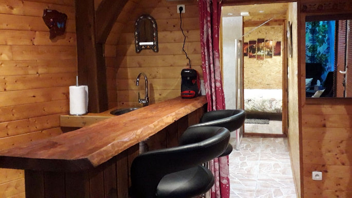 Nichée sous un arbre la cabane-gite des hirondelles peut accueillire jusqu'à 6 personnes;. Elle dispose d'un jacuzzi privé à l'usage exclusif des occupants.