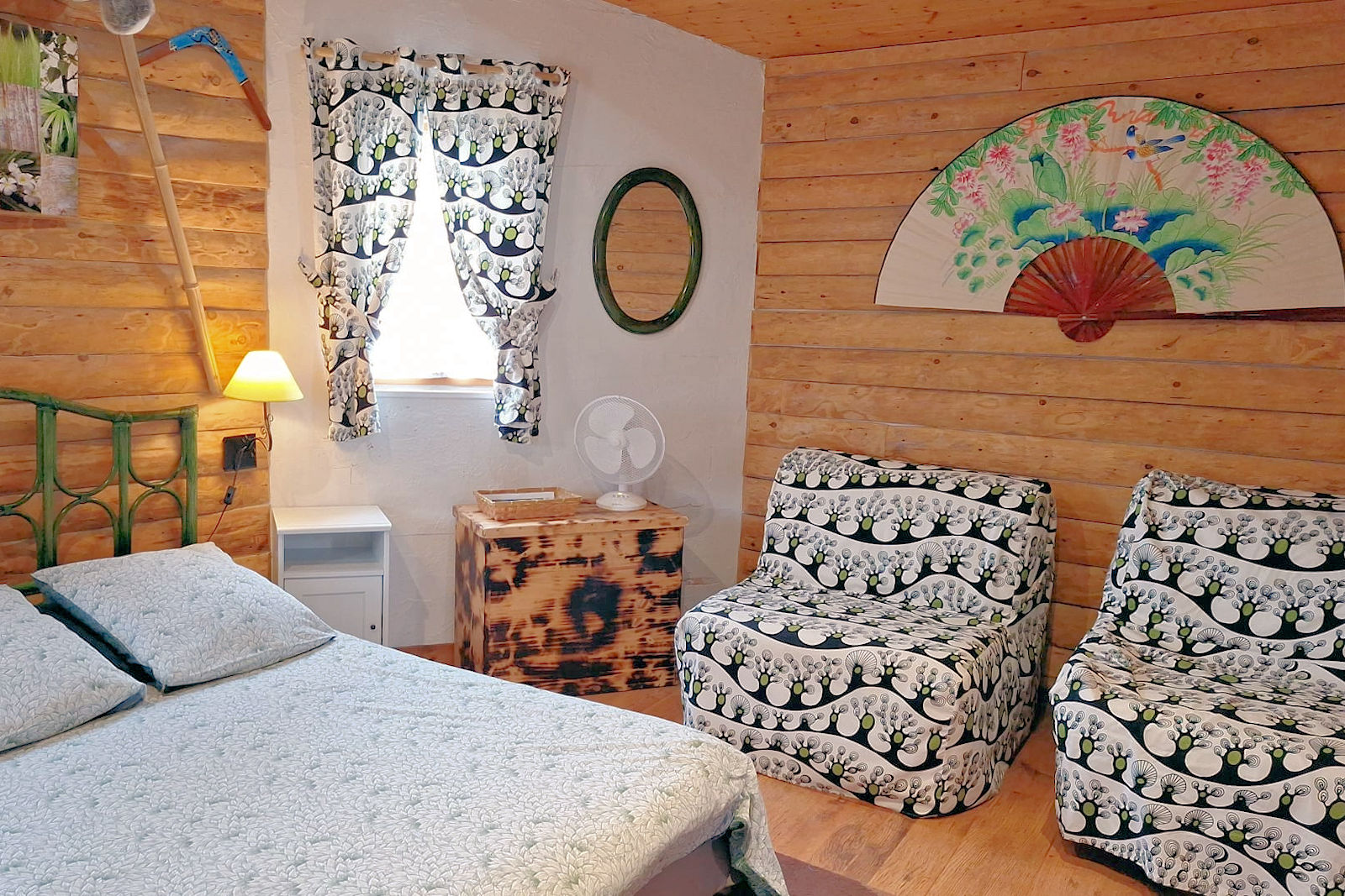 - Une chambre avec 1 lit double pour 2 personnes et 2 canapés convertibles pour 1 personne chacun.