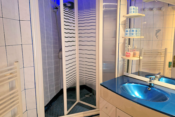 • une salle de bains (avec douche, lavabo et wc) en rez-de-chaussée